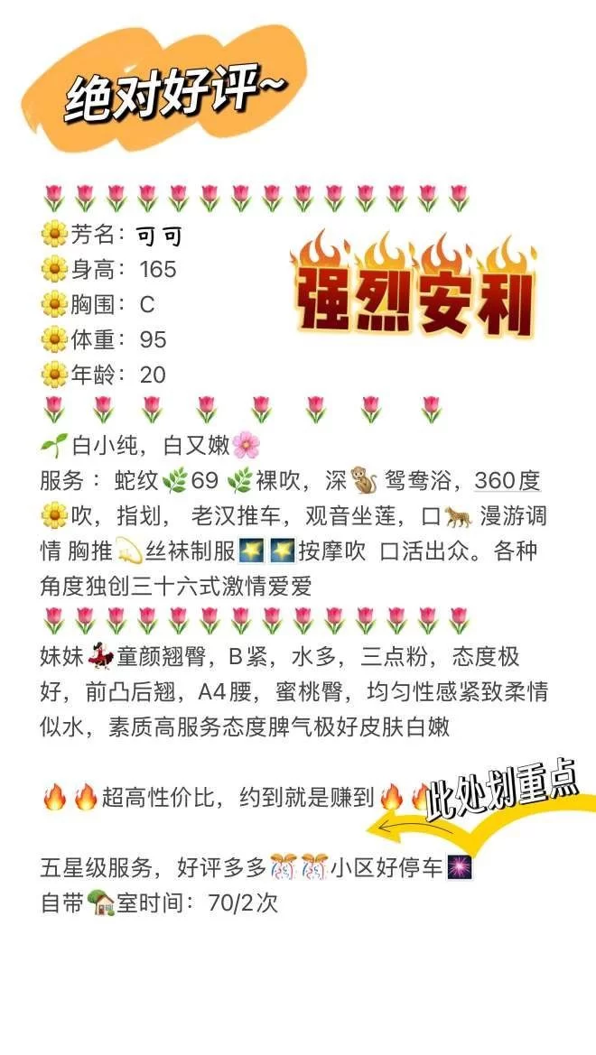 信息分类: 网友投稿-外围小姐地区: 北京-朝阳年龄: 20岁-25岁颜值身材: 前凸后翘,肤白貌美价格: 单次800,俩次1200环境设备: 星级酒店干净卫生安全服务项目: 口爆,胸推,69,莞式,深喉,冰火,丝袜,制服,角色扮演无套路,无定金,不催单。